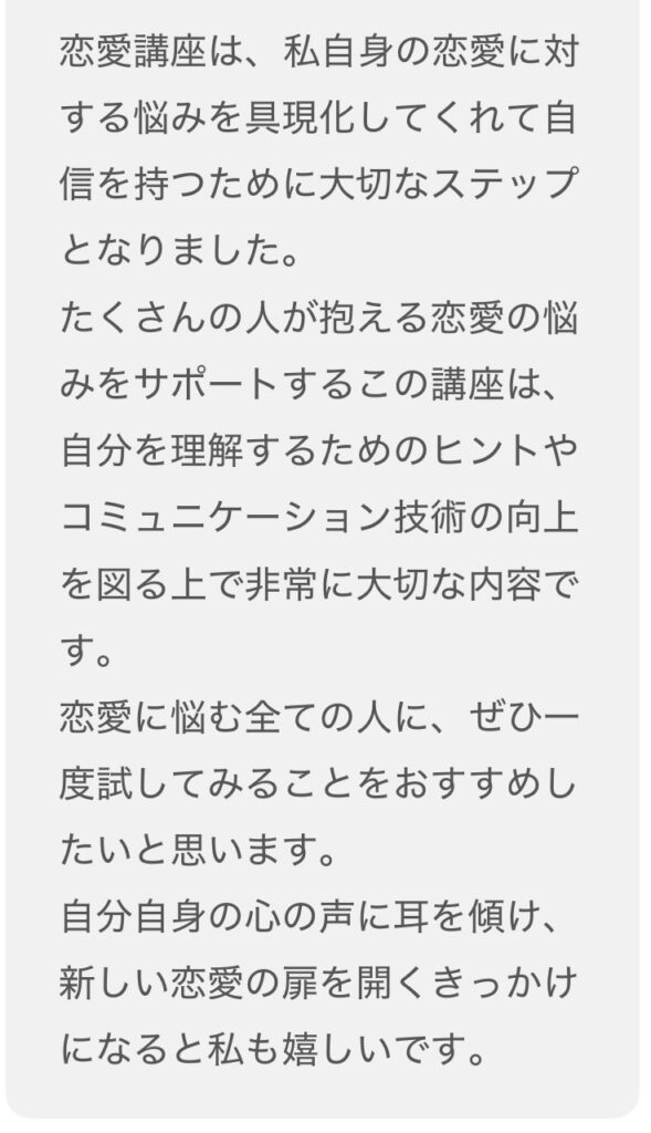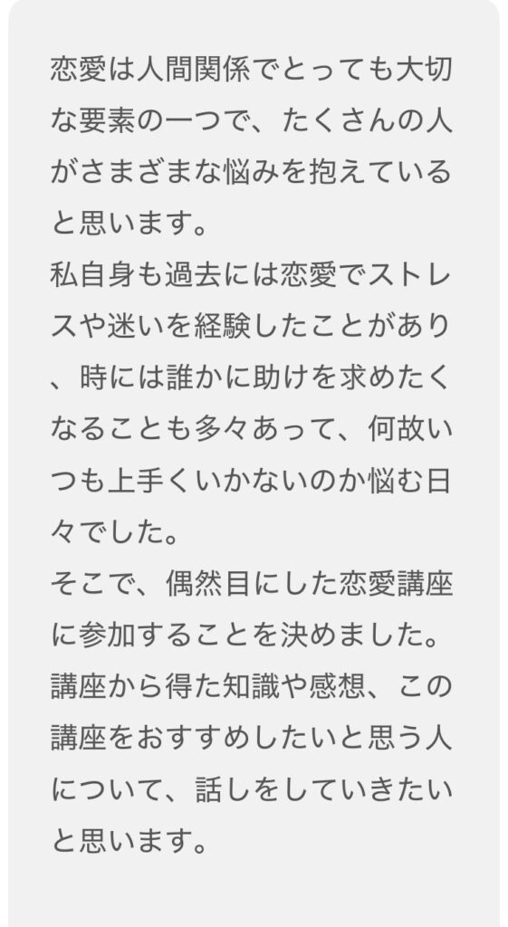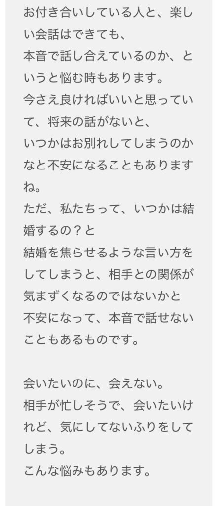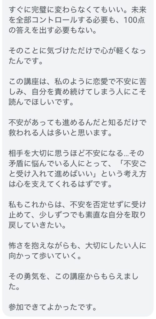 この講座は“今の彼に執着するため”の講座ではなく、あなたがどう生きたいか・どんな関係を築きたいかを明確にする講座です。